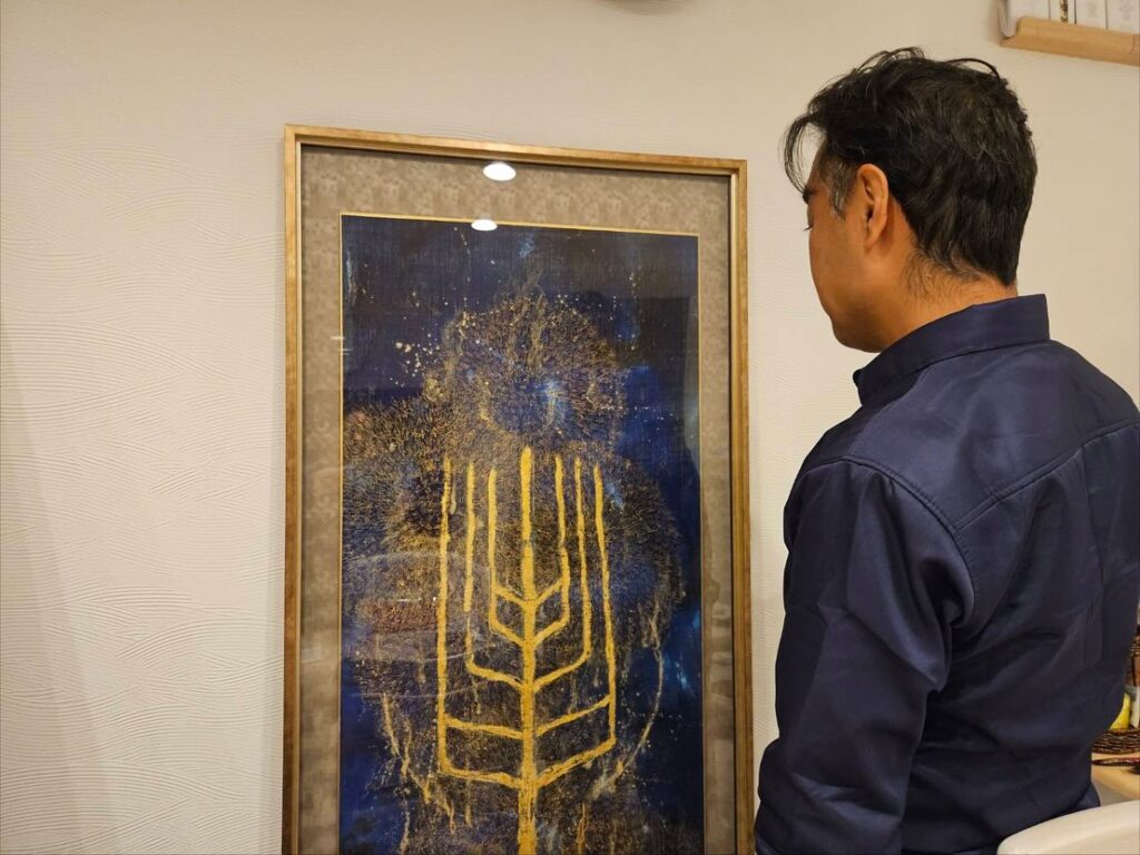 麻布に純金・銀・プラチナ・墨を用い、祈りと響きを描く作家。